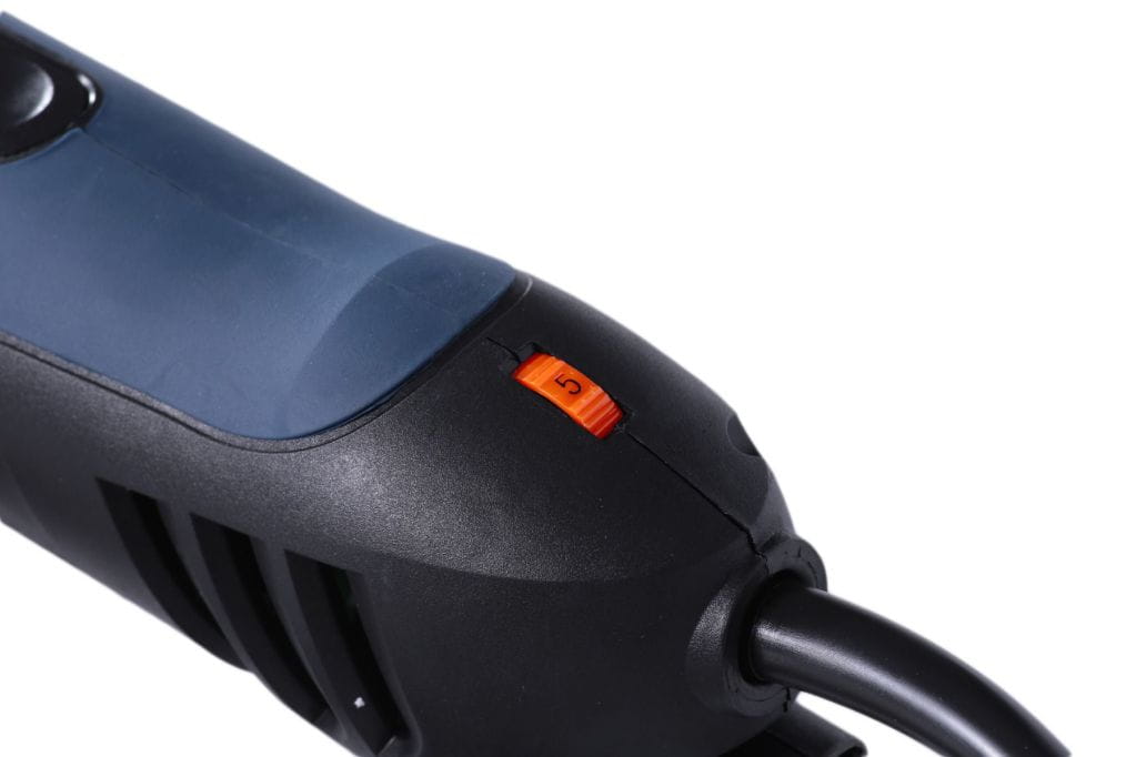 Elektroniczna regulacja obrotów pozwala na dobranie odpowiednich parametrów pracy do rodzaj obrabianego materiału a przełącznik z możliwością blokady do pracy ciągłej zapewnia duży komfort podczas wykonywania trudnych prac.