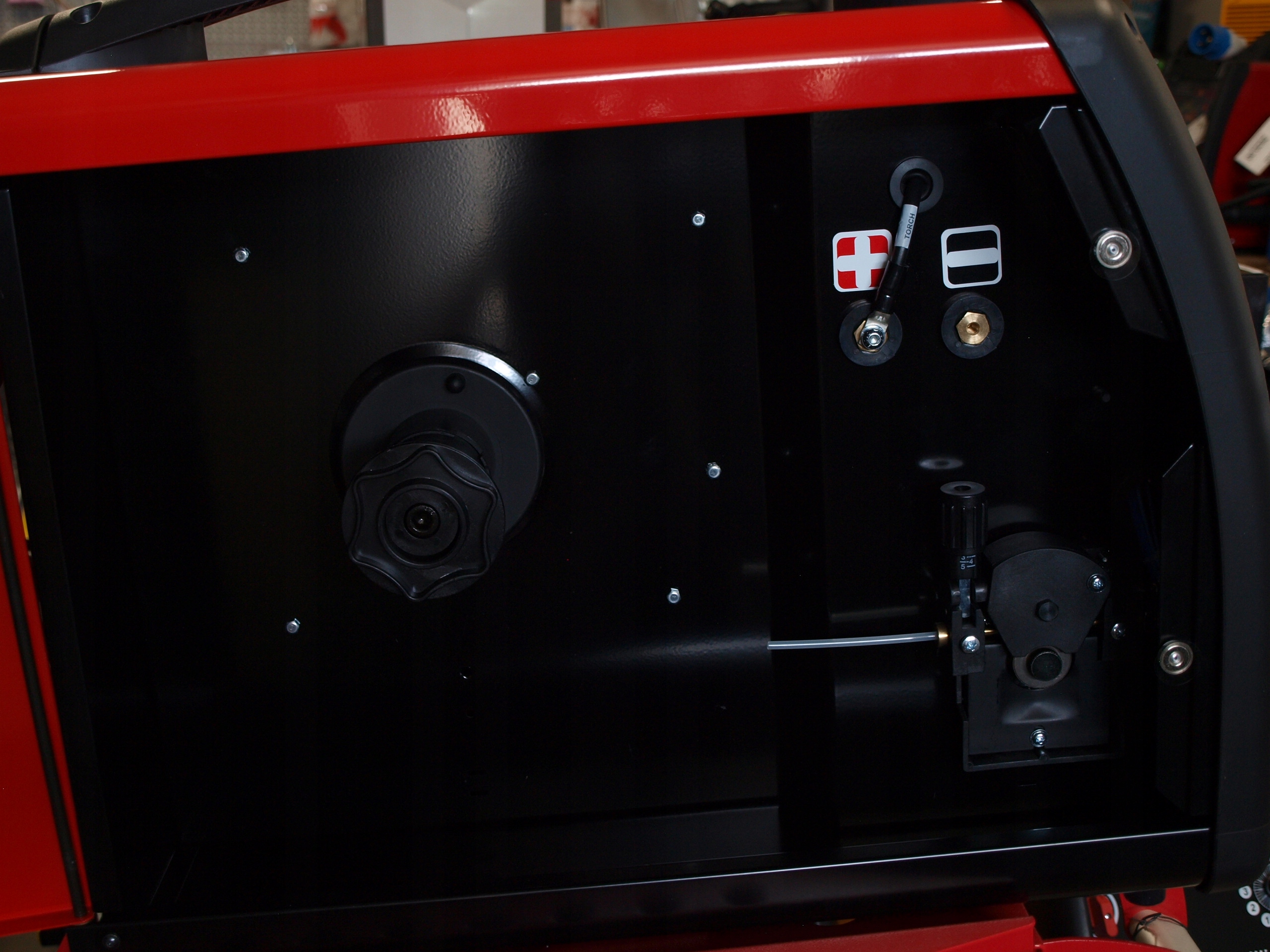 - dodatkowo regulacja: dojazdu drutu, indukcyjności, upalania drutu, wypływu gazu po zakończeniu spawania