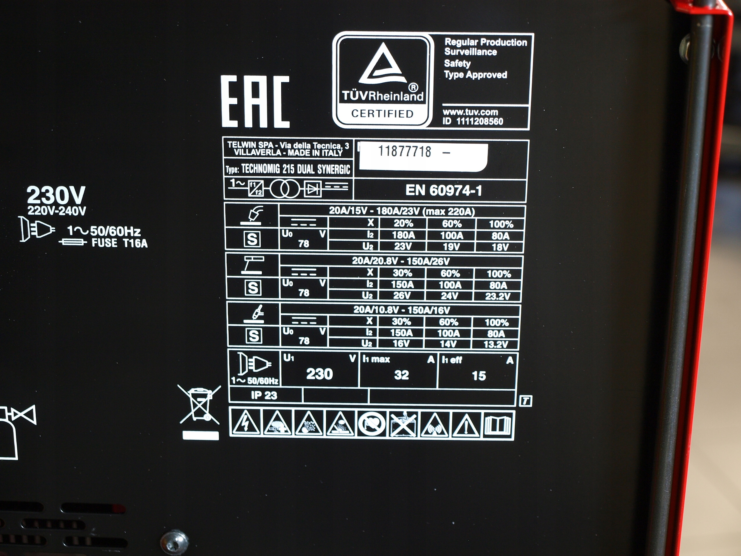 Model: TECHNOMIG 215 DUAL SYNERGIC MIG/TIG/MMA TELWIN