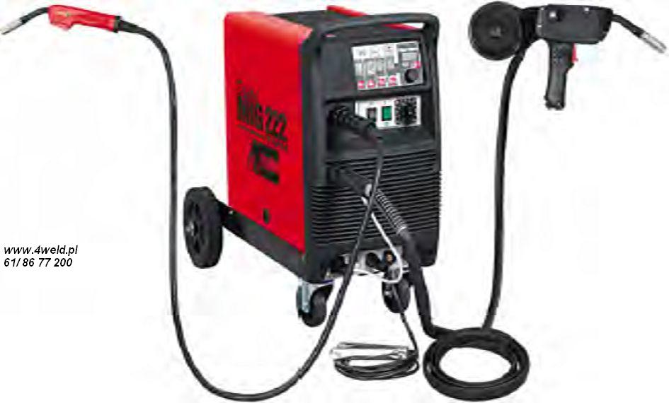 | Półautomat spawalniczy do spawania metodą MIG-MAG drutem spawalniczym w osłonie gazu. Urządzenia spawalnicze w najlepszej cenie na 4weld.pl Sterowany mikroprocesorem. Zasilanie trójfazowe. Maksymalna szpula z drutem: 15 kg. Urządzenie wyposażone w gniazdo EURO do podłączenia uchwytu spawalniczego do spawania stali węglowej oraz gniazdo do równoczesnego podłączenia uchwytu SPOOL GUN do spawania aluminum i lutospawania. Umożliwia spawanie blach ocynkowanych metodą lutospawania, blach sprężystych, stali nierdzewnej i aluminium. Samoczynna regulacja prędkości podawania drutu w zależności od spawanego materiału, średnicy drutu spawalniczego oraz gazu osłonowego. Zabezpieczenie przeciw przeciążeniu. Osiem stopni prądu spawania. Możliwość spawania punktowego. Dwa gniazda regulacji indukcyjności. Wyposażony w miernik cyfrowy (amperomierz, prędkość podawania drutu). Funkcja 2-takt / 4-takt. Chłodzony wentylatorem. Cena urządzenia z akcesoriami: uchwytem spawalniczym z wtykiem EURO 3m 220A, uchwytem spawalniczym SPOOL GUN do lutospawania i spawania aluminium, przewodem masowym 3m, szpulką drutu spawalniczego 0,8mm 0,2kg, reduktorem ciśnienia do butli gazowych. Gwarancja 12 miesięcy. Zasilanie 3x400V Maksymalna szpula z drutem: 15 kg Sterowanie microprocesorem Sterowanie synergiczne Chłodzony wentylatorem Przystosowany do podajnika drutu w rękojeści Zgodny z CE Zgodny z LVD i EMC | ![]() ![]() |
