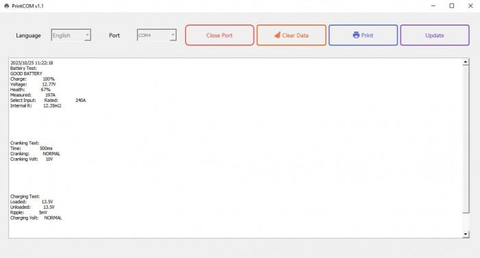 Wbudowane złącze USB mini umożliwia połaczenie testera z komputerem i wydruk odczytanych parametrów.