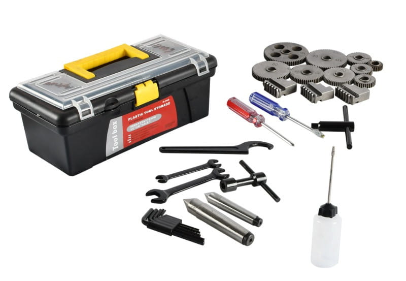 - tokarka dostarczana jest w drewnianej skrzyni wraz z poniższymi akcesoriami