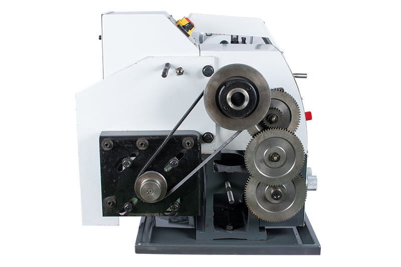 Duża skrzynia przekładniowa pracuje w kąpieli olejowej, dzięki czemu tokarka nadaje się do codziennej pracy w warunkach przemysłowych.