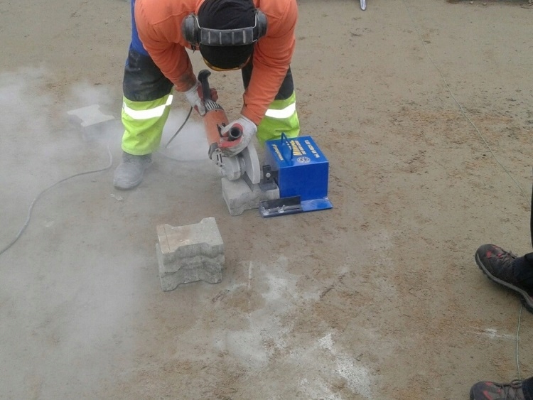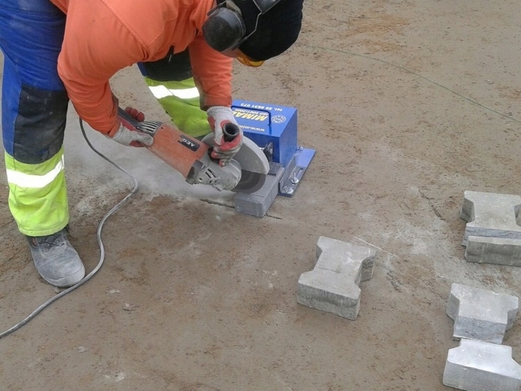 Trzymak nożny do bezpiecznego przytrzymywania kostki brukowej podczas cięcia (UNK)
