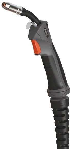 Uchwyt chłodzony jest gazem osłonowym.,Zakończony jest znormalizowanym wtykiem typu EURO pasującym do większości półautomatów spawalniczych