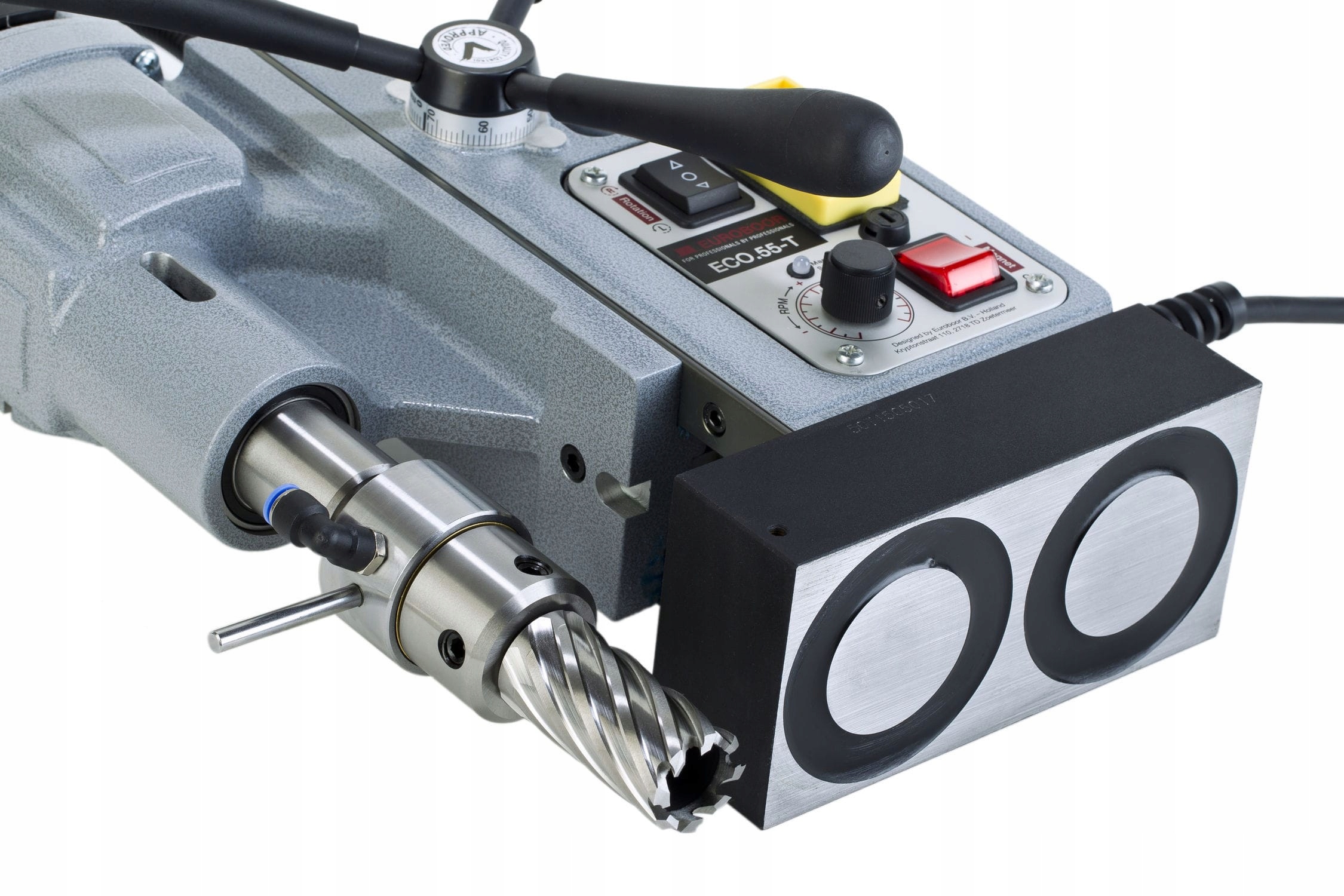 Wiertarka wyposażona w unikalny system EUROBOOR SENSORTEC; czujnik który czuwa nad tym czy magnes prawidłowo przylega do powierzchni oraz czy posiada wystarczającą siłę by przywiązać się do materiału.