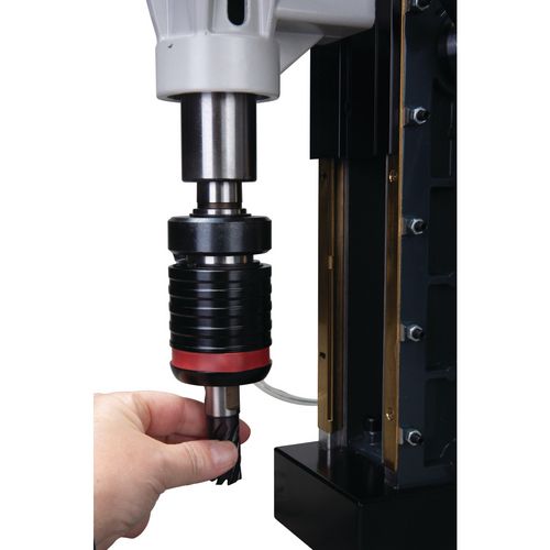 Szybkowymienny uchwyt Weldon 19 pozwala na beznarzędziową szybką wymianę frezów trepanacyjnych.
