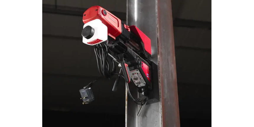 Niska waga. Aluminiowa osłona zintegrowana z korpusem gwarantuje najwyższe bezpieczeństwo obsługi urządzenia. Wytrzymała obudowa silnika i odlewany korpus zapewniają trwałość urządzenia. Zastosowanie zaawansowanej technologii produkcyjnej sprawiają, że wiertarka zalicza się do najlżejszych wiertarek magnetycznych na świecie.