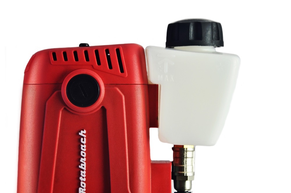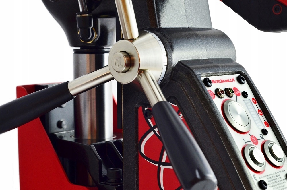 Konstrukcja.Urządzenie posiada oryginalny, wygodny w użyciu uchwyt transportowy (ogumowany). Stopa magnetyczna jest węższa i jednocześnie silniejsza niż w konkurencyjnych modelach wiertarek. Przewód zasilający zlokalizowany jest wewnątrz wiertarki, co chroni go przed uszkodzeniami oraz zapewnia komfort podczas pracy. Dodatkowo urządzenie umożliwia przełożenie uchwytów odpowiedzialnych za ruch roboczy z lewej strony na prawą i odwrotnie. Jest to unikalne rozwiązanie, pozwalające nie tylko na wygodną obsługę przez osoby prawo- i leworęczne, ale również umożliwiający wiercenie w trudno dostępnych miejscach. Pojemnik na emulsję chłodzącą jest wkomponowany w konstrukcję urządzenia, a dostęp do niego jest wygodny.