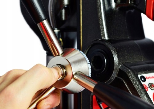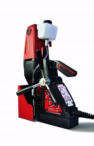 Konstrukcja.Urządzenie posiada oryginalny, wygodny w użyciu uchwyt transportowy (ogumowany). Stopa magnetyczna jest węższa i jednocześnie silniejsza niż w konkurencyjnych modelach wiertarek. Przewód zasilający zlokalizowany jest wewnątrz wiertarki, co chroni go przed uszkodzeniami oraz zapewnia komfort podczas pracy. Dodatkowo urządzenie umożliwia przełożenie uchwytów odpowiedzialnych za ruch roboczy z lewej strony na prawą i odwrotnie. Jest to unikalne rozwiązanie, pozwalające nie tylko na wygodną obsługę przez osoby prawo- i leworęczne, ale również umożliwiający wiercenie w trudno dostępnych miejscach. Pojemnik na emulsję chłodzącą jest wkomponowany w konstrukcję urządzenia, a dostęp do niego jest wygodny.