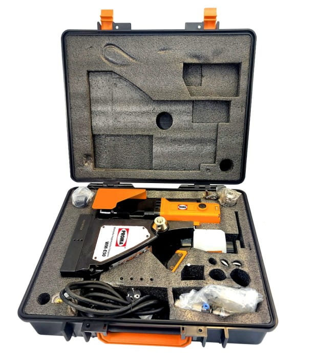 Atutem wiertarki magnetycznej Proma WM-E50 jest wyposażenie jej standardowo w trzy wiertła trepanacyjne (14, 16 i 18 mm) o długości roboczej 30 mm, wraz z pilotem prowadzącym