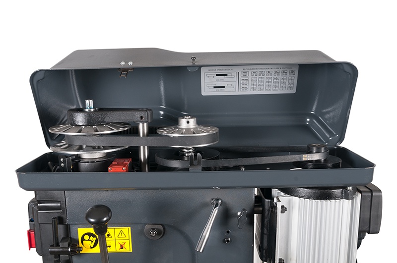 Wrzeciono z łożyskami kulkowymi jest osadzone stożkiem Mk III, do którego można zamocować głowicę wiercącą lub inne narzędzia