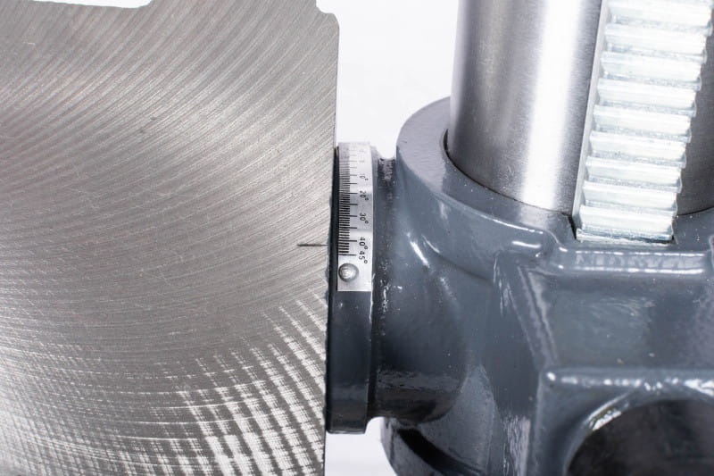 Stół roboczy może być obracany o 360° i pochylany w zakresie +/-45°, co umożliwia wiercenie otworów pod różnymi kątami