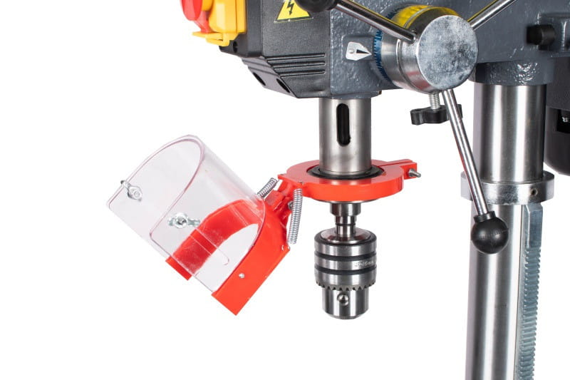 Wrzeciono z łożyskami kulkowymi jest osadzone stożkiem Mk II, do którego można zamocować głowicę wiertniczą lub inne narzędzia