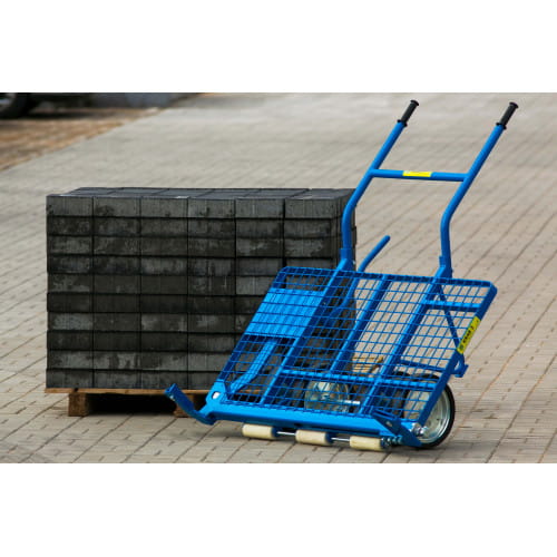 Wózek brukarski przeznaczony jest do przewozu pionowych rzędów kostki brukowej podnoszonych bezpośrednio z palety, dodatkowym zastosowaniem jest wykorzystanie go jako platformy do przewozu różnych materiałów na placu budowy. Wózki są lekkie oraz proste w obsłudze.